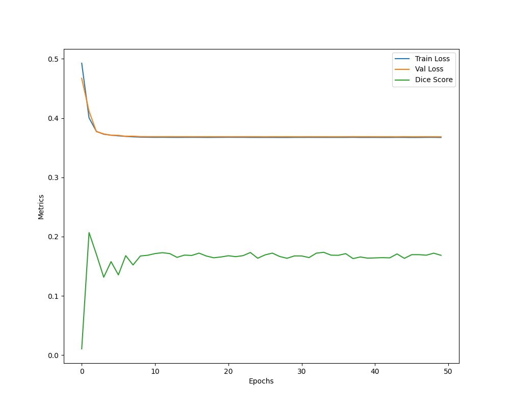 Métricas: O coeficiente de Dice foi utilizado para avaliar a sobreposição entre as predições do modelo e as máscaras reais.