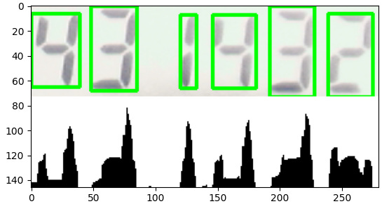 cv2.rectangle(img,(x,y),(x+w,y+h),(0,255,0),2)By doing this we can make the projection histogram.