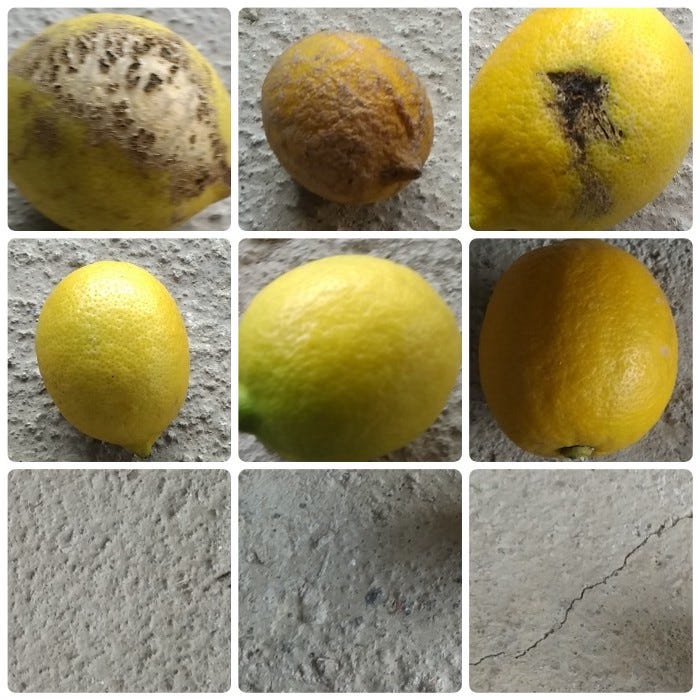 Dataset contains images of both bad and good quality lemons under slightly different lighting conditions (all under daylight) and sizes.